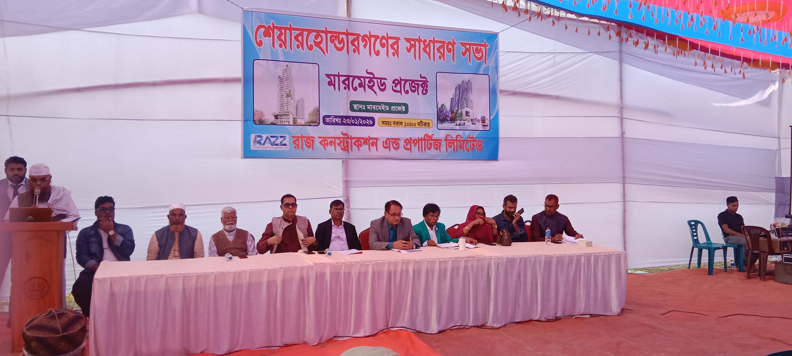 ২৩।০১।২৬ তারিখ রোজ শুক্রবার রাজ কনস্ট্রাকশনের উদ্যোগে শেযারহোল্ডারদের নিয়ে প্রজেক্টের নিজস্ব জমিতে প্লানিং কমিটির চেয়ারম্যান ক্যাপ্টেন এম বায়েজিদের সভাপতিত্বে সকাল ১১.০০ টায় মুফতি বশির আহমেদের কোরআন তেলোয়াতের মাধ্যমে সভা শুরু হয়। স্বাগত বক্তব্য রাখেন রাজ কনস্ট্রাকশনের ব্যবস্থাপনা পরিচালক সৈয়দ রওশন আলী। প্লানিং কমিটির চেয়ারম্যান এম তবায়েজিদ আলী প্রজেক্টের অগ্রগতি নিয়ে আলোচনা করেন। প্লানিং কমিটির উপদেষ্টা ড. এম হেলাল পরবর্তী করণীয় নিয়ে শেয়ারহোল্ডারদের অবদান কী হবে তা নিয়ে বক্তব্য প্রদান করেন। তিনি বলেন প্রজেক্ট যথাসময়ে বাস্তবায়নে টাকার চেয়েও যোগ্য ব্যক্তি বেশি প্রয়োজন। মিতব্যয়ীতা ও স্বচ্ছতার উপর তিনি বিশেষ গুরুত্বারোপ করেন। পরে ডিজাইন নিয়ে বিস্তারিত আলোচনা করেন ইঞ্জিনিয়ার ( আর্কিটেকচার) ইমরুল ইসলাম দুররানী ও ইঞ্জিনিয়ার ( স্ট্রাকচার) ইশতিয়াক হোসেন।